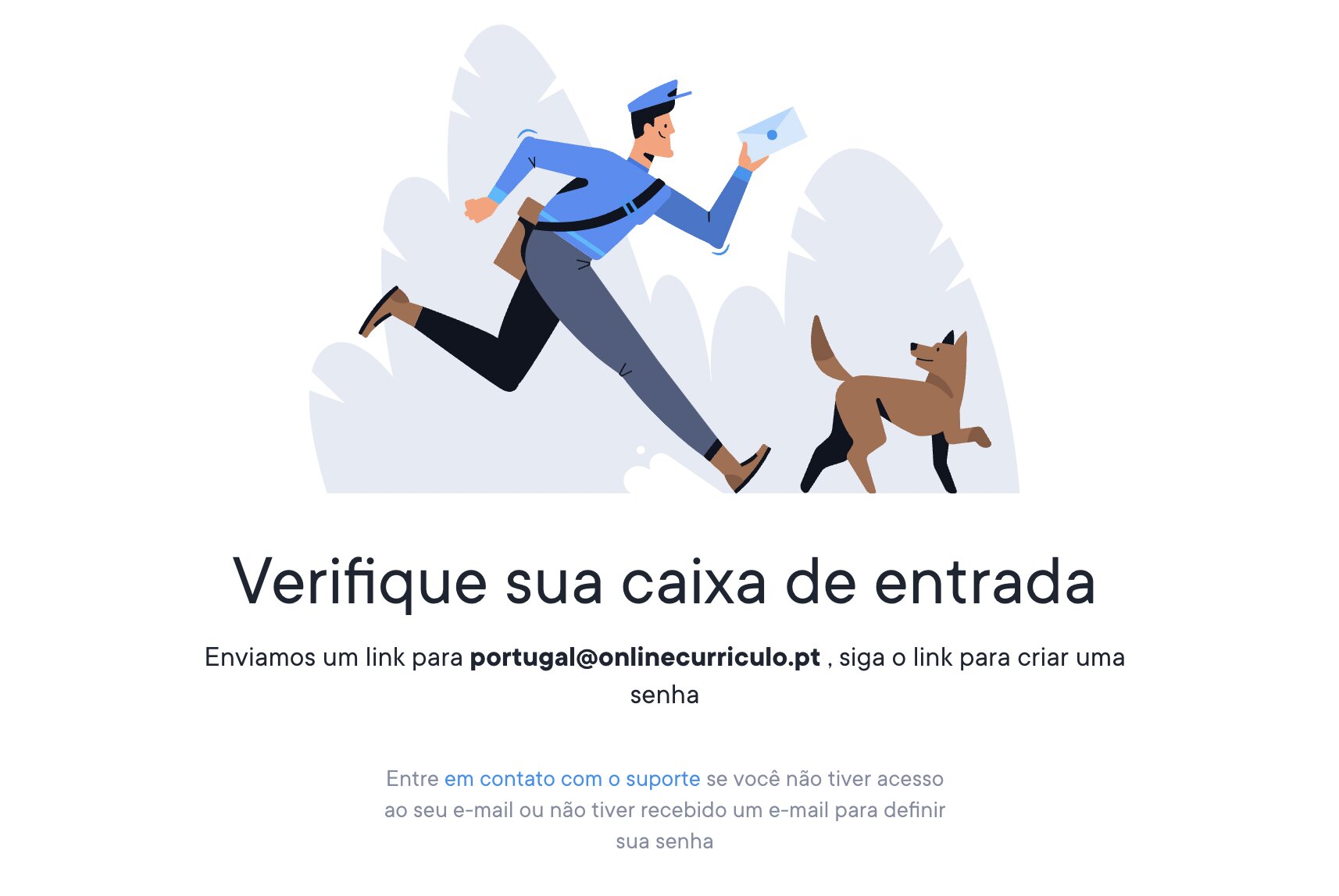 Se o seu endereço de e-mail está a funcionar mas não recebe o e-mail com a ligação mágica, verifique a sua pasta de spam ou tente procurar na sua caixa de entrada por Onlinecurriculo.