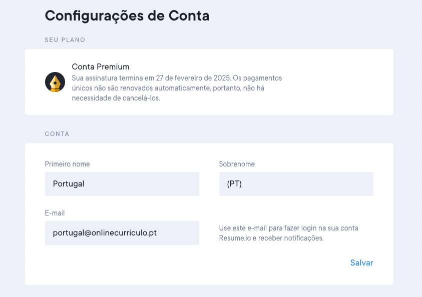 Pode voltar a iniciar sessão no Onlinecurriculo para editar ou aceder ao seu currículo, utilizar os nossos recursos gratuitos como a partilha de currículo e procura de emprego, bem como voltar a subscrever a qualquer momento no futuro.