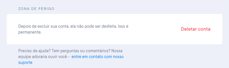 Se quiser apagar definitivamente a sua conta, desloque-se até ao final da página de Configurações da conta e clique em Apagar conta. Veja a imagem abaixo.
